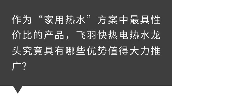 與傳統衛浴水龍頭相比,能夠“隨時隨地直接出熱水”的飛羽快熱電熱水龍頭更具性價比。一個龍頭兼備出水功能和加熱功能,實用性高且價格親民,一步到位的感覺就是好。