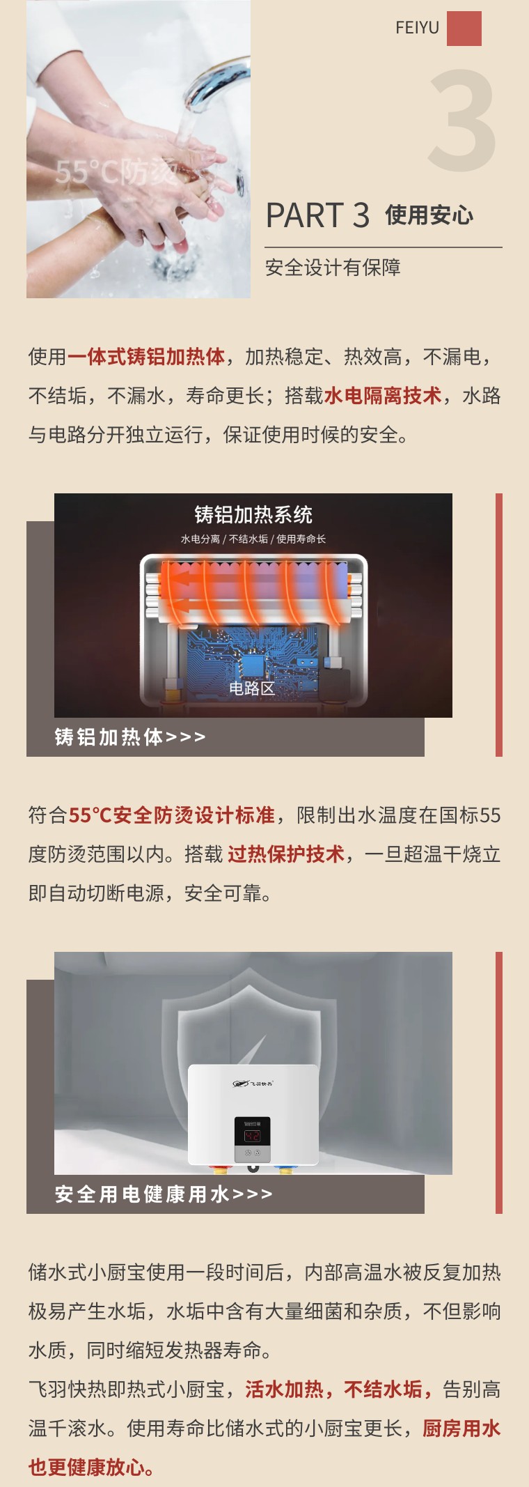 明明家里有了熱水器,你卻還在等冷水排光?明明浴室距離廚房也就十步距離,熱水為何總是遲遲不來?想要熱水即開即有,你家少不了這一臺飛羽快熱即熱式小廚寶。